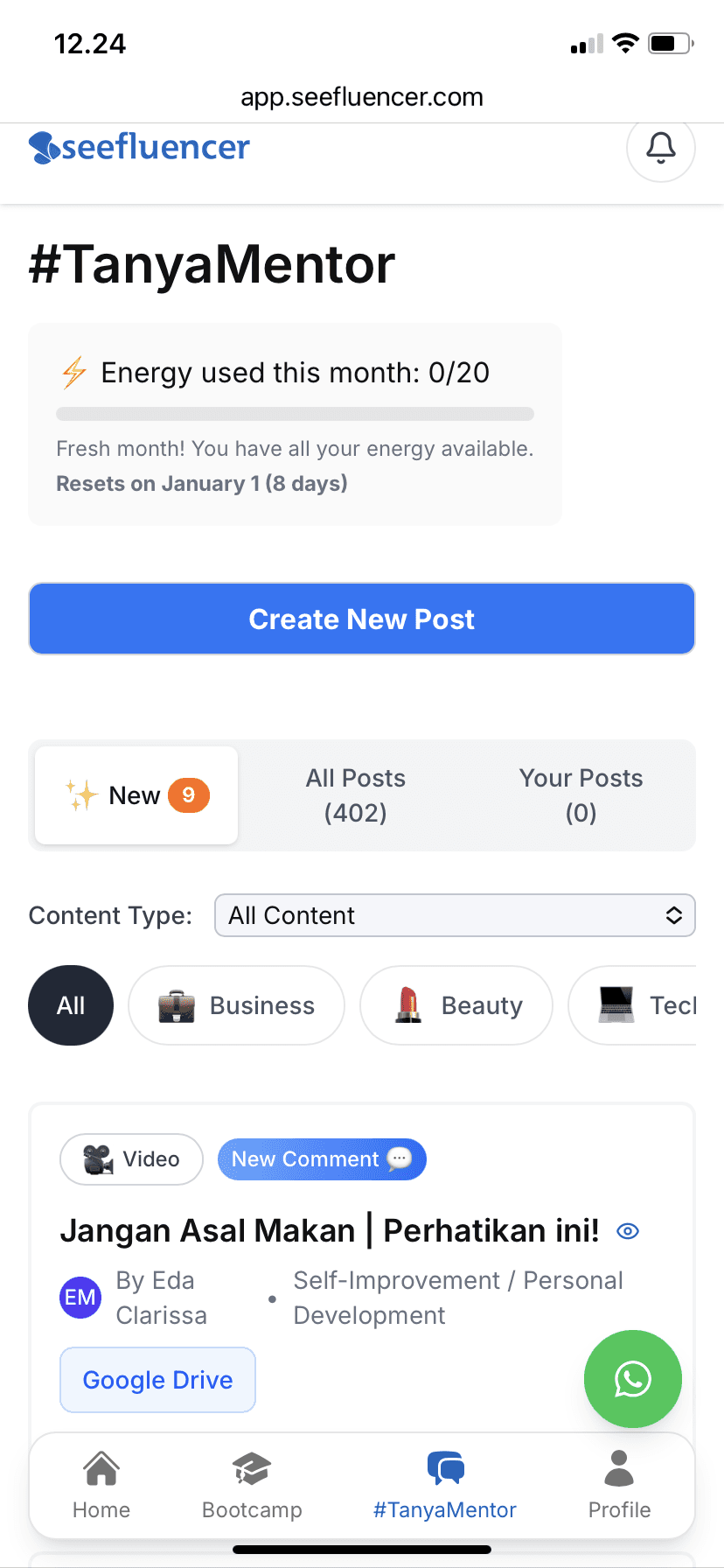 "Kelas konten kreator terbaik menurutku pribadi. Dengan kurikulum yang simple dan terstruktur. Mentor2 pun ramah dan gercep. Sukses selalu Seefluencer"