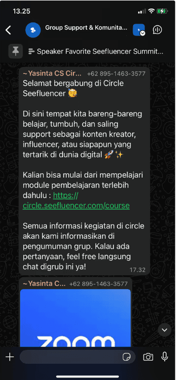 "berawal dari ikut seminar free dari ko Sam via zoom. and lanjut ikut seminar seefluencer summit. disana bener bener teratrik ikut circle karena dari segi materi yang ngedaging banget danmudah dipahami. baru beberapa hari ikut circle but siapa sangka disana bener bener diajarin dan dibimbing tiap harinya gimana caranya untuk ngecontent. its really good experience bisa join circle, masih heran kenapa ko sam bisa kasih harga yang seterjangkau itu untuk kualitas pengajaran yang sebagus ini"